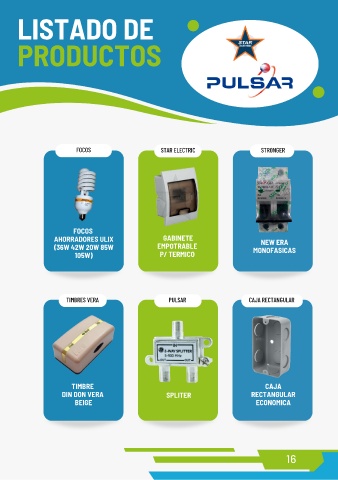 LISTADO DE PRODUCTOS FOCOS STAR ELECTRIC STRONGER FOCOS AHORRADORES ULIX GABINETE NEW ERA (36W 42W 20W 85W EMPOTRABLE MONOFASICAS 105W) P/ TERMICO TIMBRES VERA PULSAR CAJA RECTANGULAR TIMBRE CAJA DIN DON VERA SPLITER RECTANGULAR BEIGE ECONOMICA 16