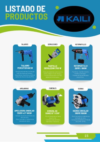 - Carcasa robusta de poliamida con - Pies de goma para un apoyo - Motor montado en rodamientos,