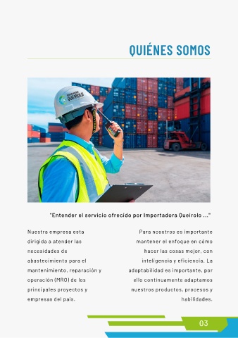 "Entender el servicio ofrecido por Importadora Queirolo ..."